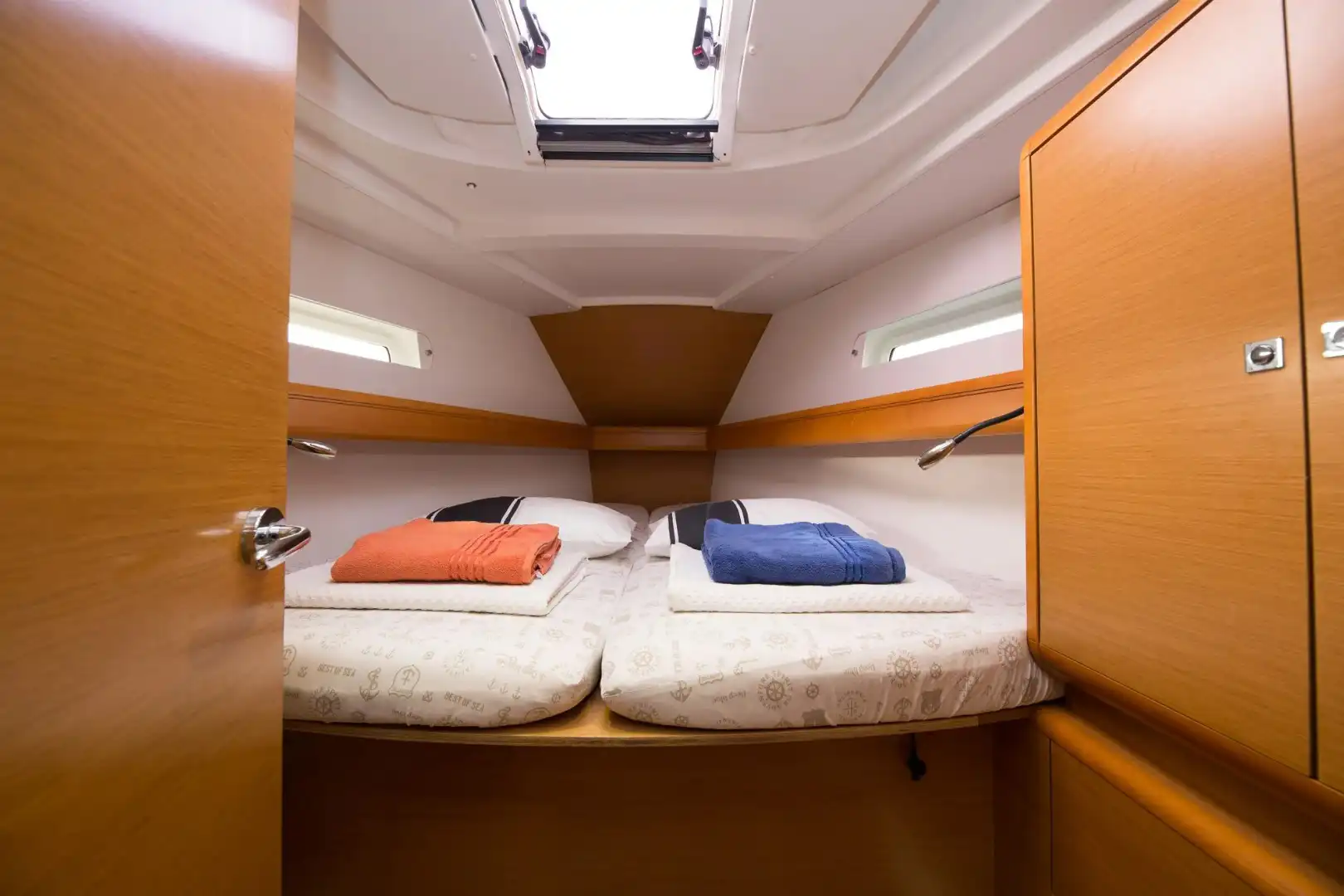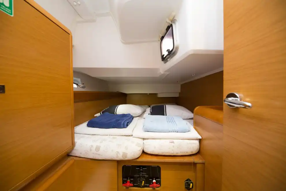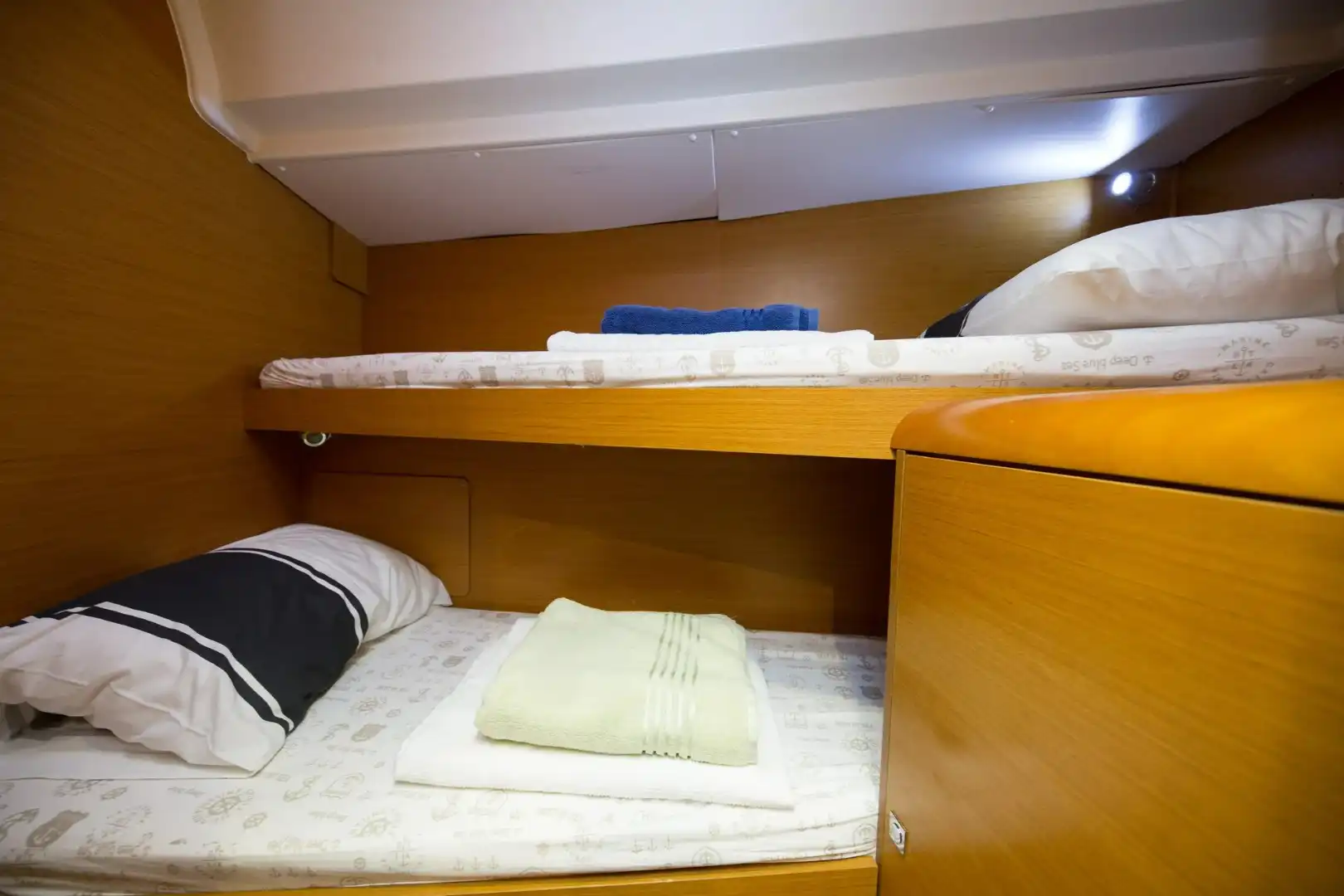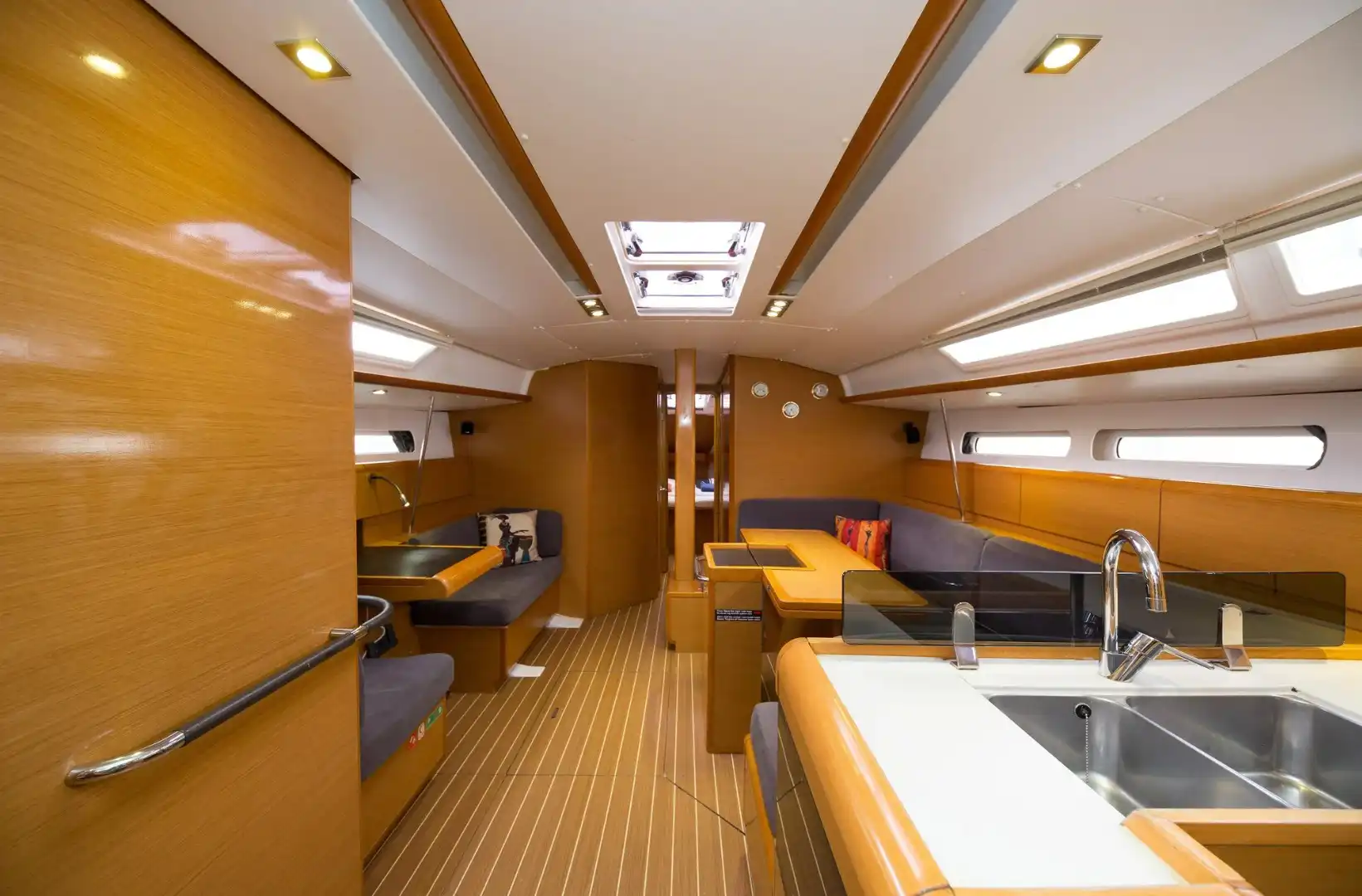 Toplam 4 kabin, 2 banyo ve akıllıca planlanmış yaşam alanları sayesinde Toya, 9 kişiye kadar konaklama ve seyir kapasitesi sağlar. Geniş iç hacmi, fonksiyonel mutfağı ve ferah kokpiti ile uzun süreli Fethiye mavi tur rotaları için yüksek konfor sunar. Jeanneau kalitesiyle üretilmiş olan Sun Odyssey 439, hem deneyimli yelkenciler hem de keyif odaklı tatilciler için dengeli bir performans sağlar.