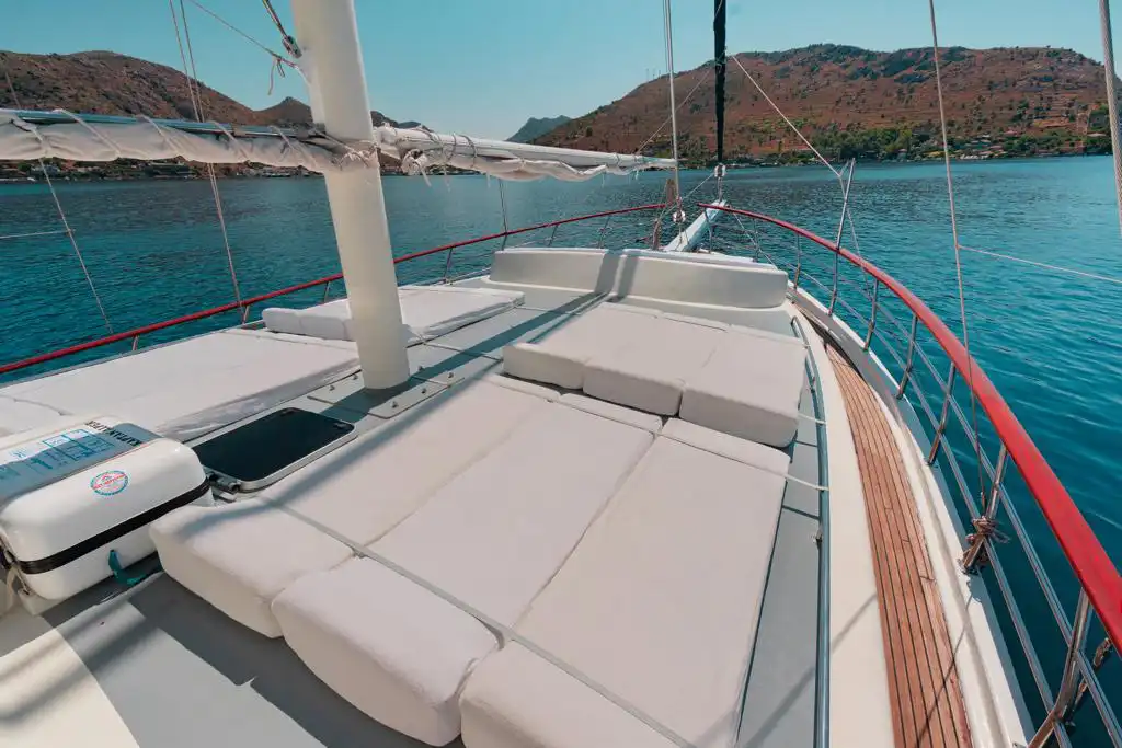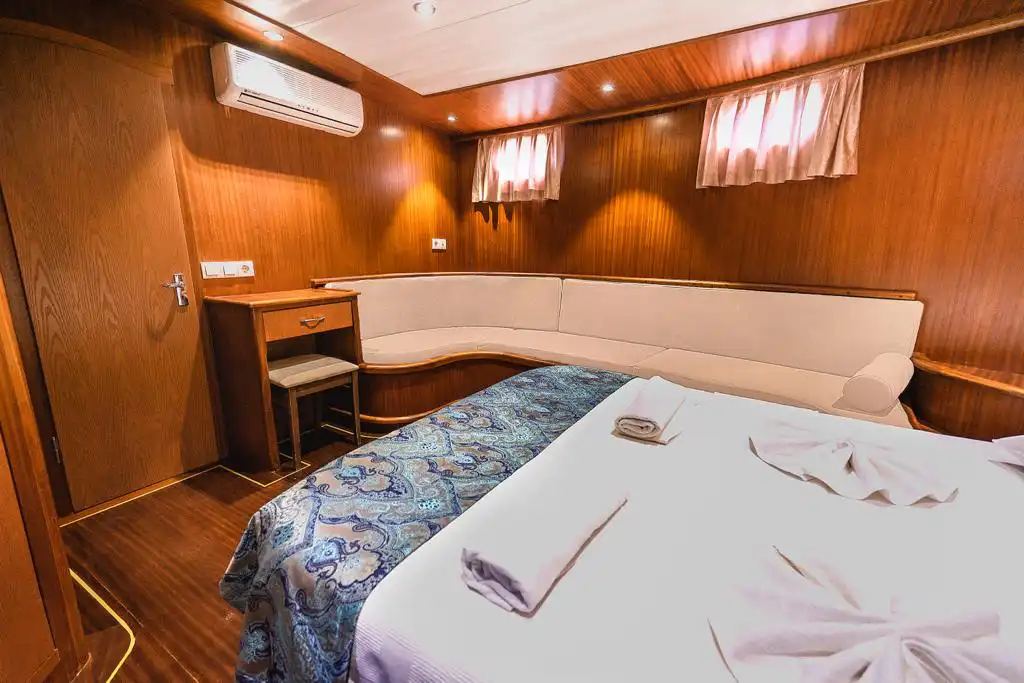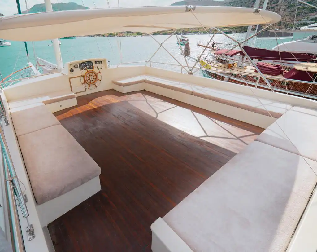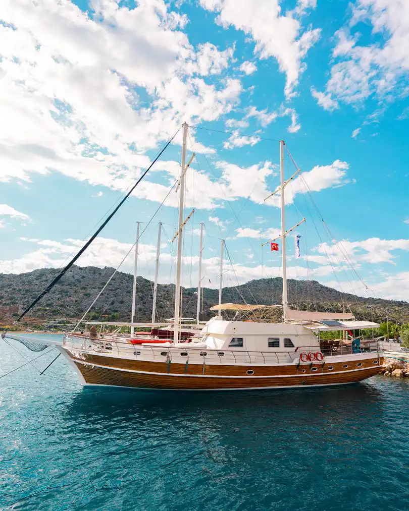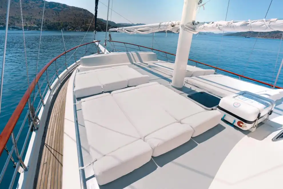 Kaptan Alper ile Bozburun koylarının eşsiz güzelliğini keşfederken, klimalı kabinlerimizde rahatlayabilir, geniş güneşlenme alanlarımızda dinlenebilir ve deneyimli ekibimizin hazırladığı lezzetli yemeklerin tadını çıkarabilirsiniz.