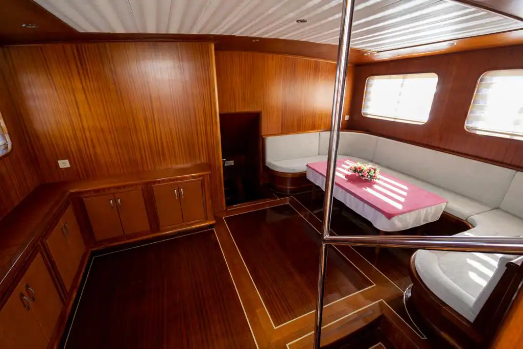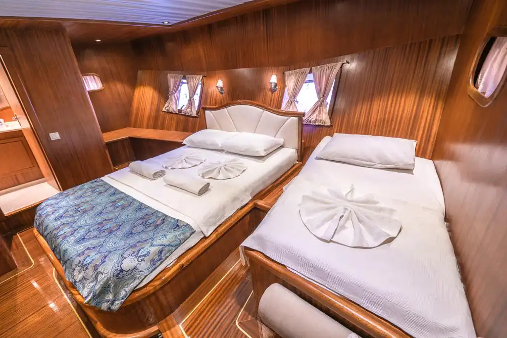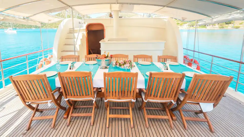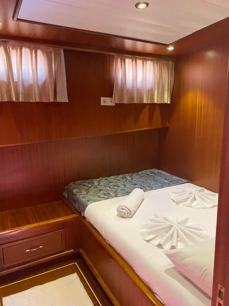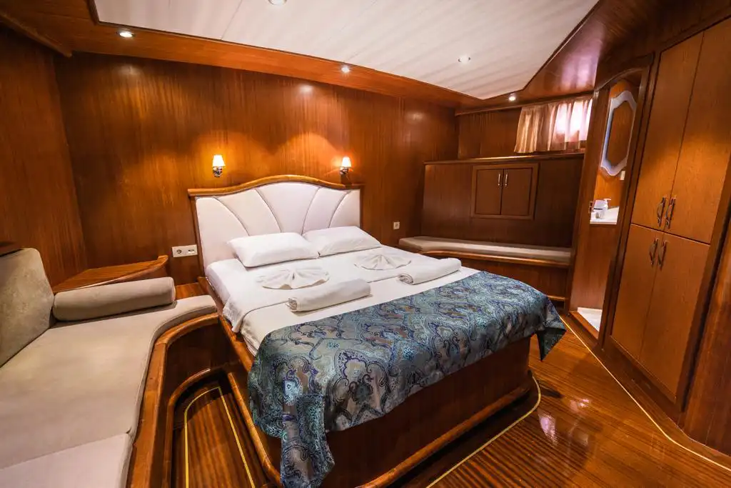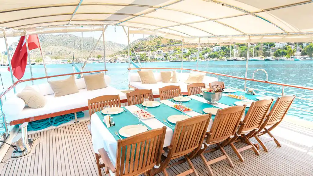 Kaptan Alper ile Bozburun koylarının eşsiz güzelliğini keşfederken, klimalı kabinlerimizde rahatlayabilir, geniş güneşlenme alanlarımızda dinlenebilir ve deneyimli ekibimizin hazırladığı lezzetli yemeklerin tadını çıkarabilirsiniz.