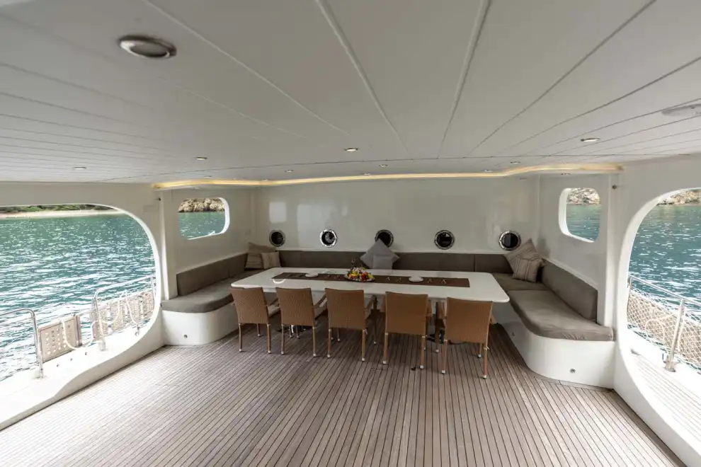 2017 yılında baştan aşağı yenilenen yatımız, mavi yolculuk hayallerinizi gerçeğe dönüştürmek için tasarlandı. Geniş ve ferah yaşam alanları, deneyimli mürettebatımız ve sunduğumuz özel hizmetlerle unutulmaz bir tatil deneyimi yaşayacaksınız.