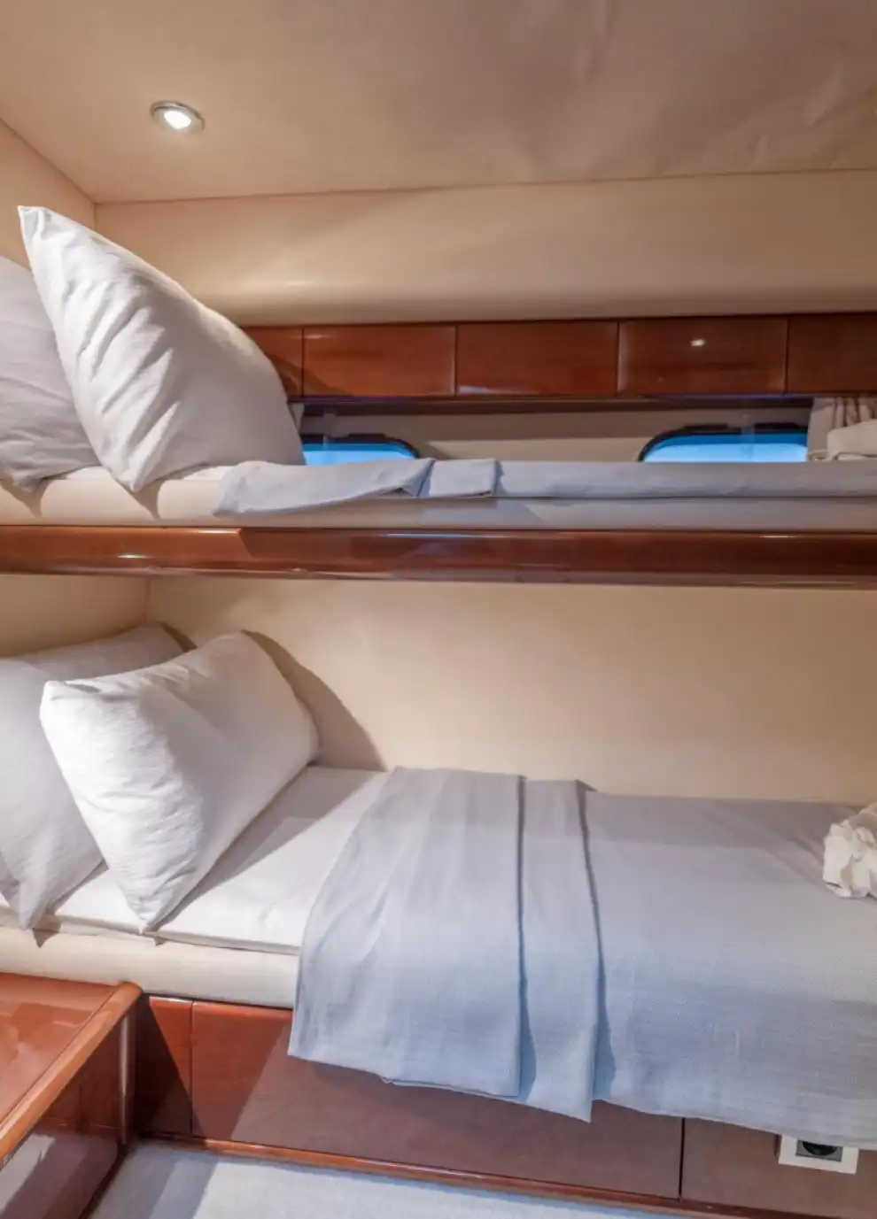 Güçlü motorları ve jeneratörü ile , 22 Knots'a kadar ulaşabilen hızıyla size keyifli bir seyir imkanı sunar.